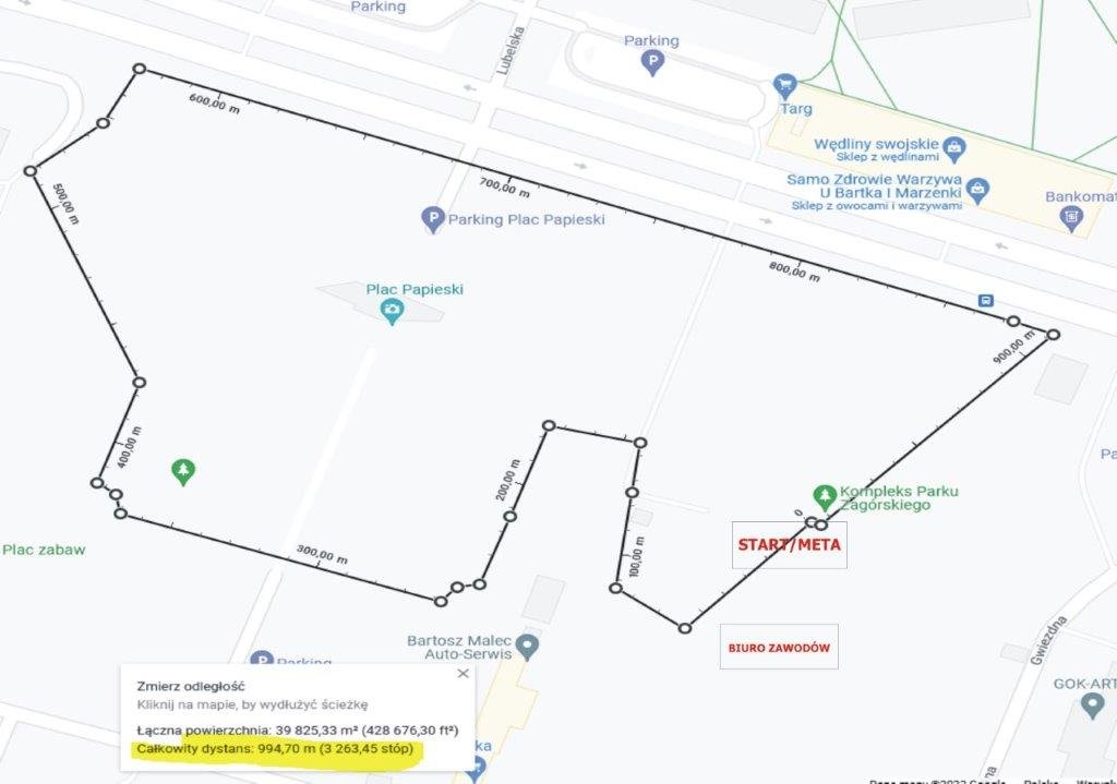 Biegacze wystartują o godzinie 12:30, biuro zawodów czynne będzie od godziny 10:00. Trasa biegu przebiegać będzie alejkami Placu Papieskiego a jego dystans wyniesie ok. 1989 metry. Dystans ten ma charakter symboliczny, bo to właśnie w 1989 roku odbyły się w Polsce pierwsze częściowo wolne wybory.